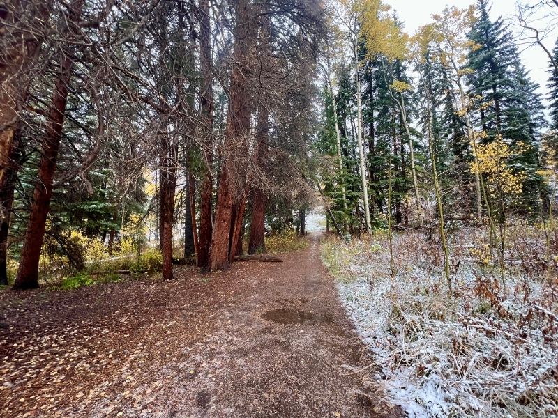 This moderately challenging trail offers incredible views in every season, but catching that rare fall-and-winter crossover made it even more magical.