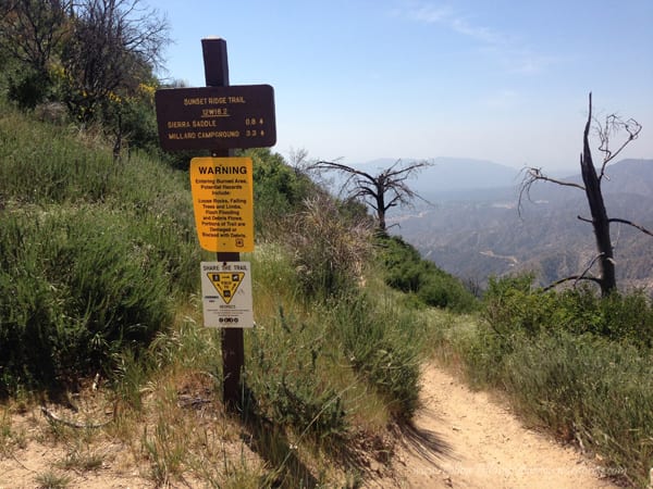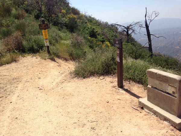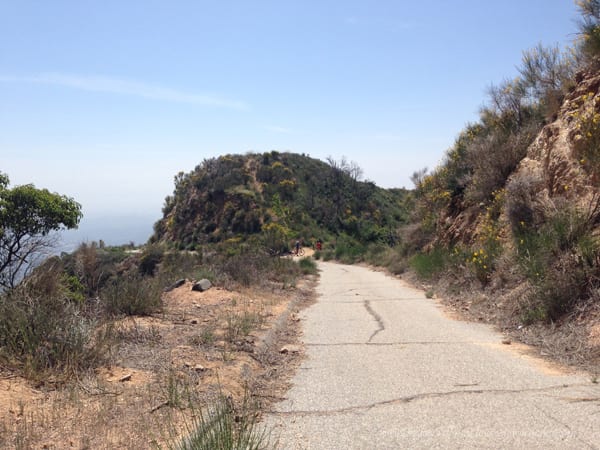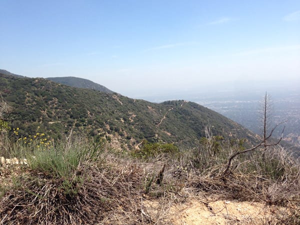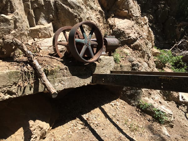 The optional route up (instead of same way out and back) was a short distance hike up to the fireroad, but a big elevation climb. It took us about an hour to get all the way up and the trail is a little tricky to find, but once you are on it, it’s a clear, straight shot up — very narrow at points though so be careful! The whole hike’s elevation gain is right here since you are starting at the very bottom of the hike and reaching the highest point, so it may take some huffing and puffing for a beginner. After you get to the fireroad, you are at the Mt Lowe Railway Dawn Station and it’s a clear path down. The decline is slight but longer, maybe three miles or so. I believe it took us 6 miles from the trailhead to the mine and back to the top of the fire road. We finished the hike at a bit over 9 miles so it makes sense. The fire road connects to the one we came in on.