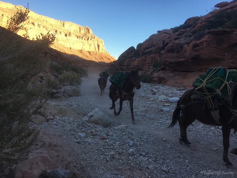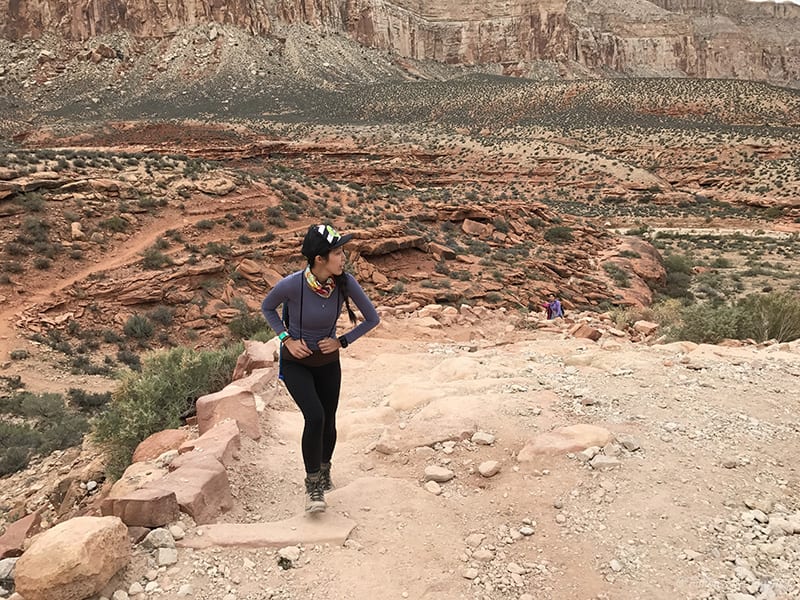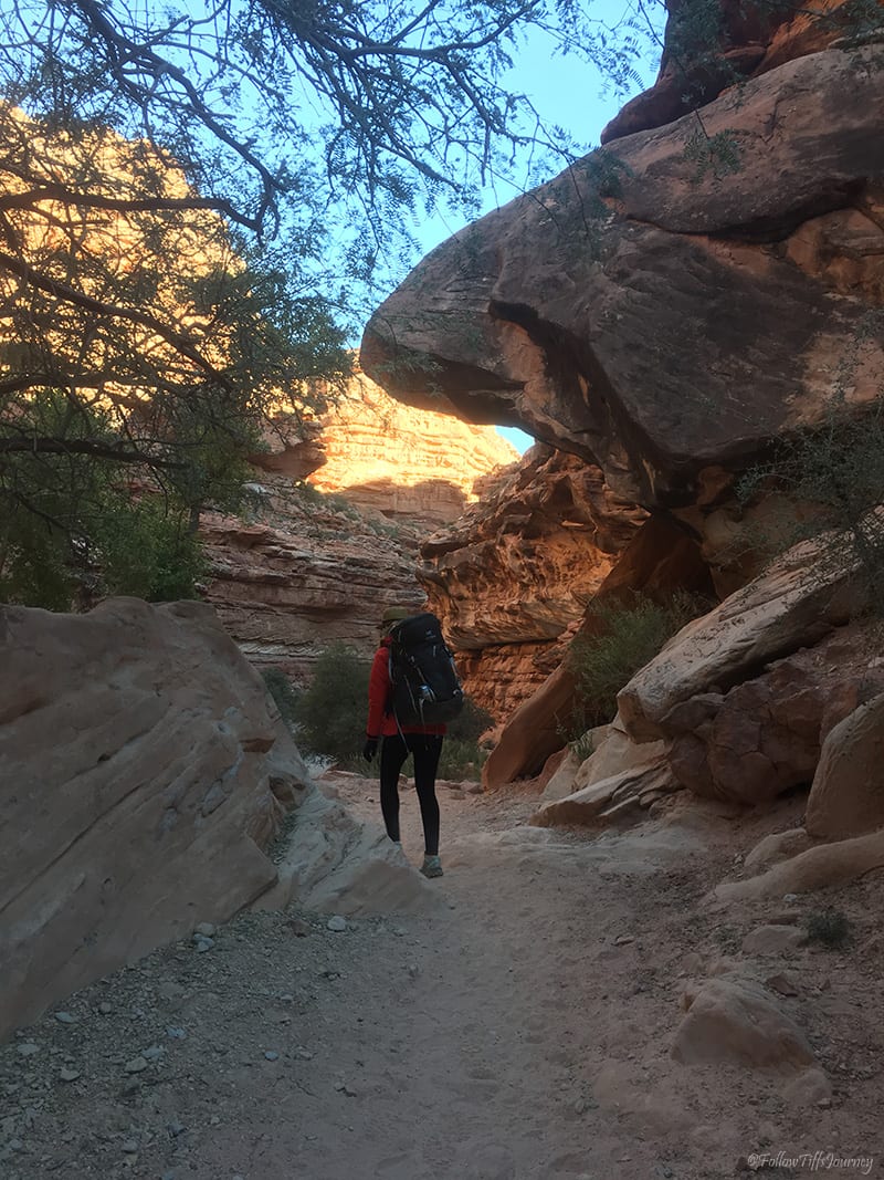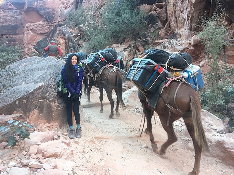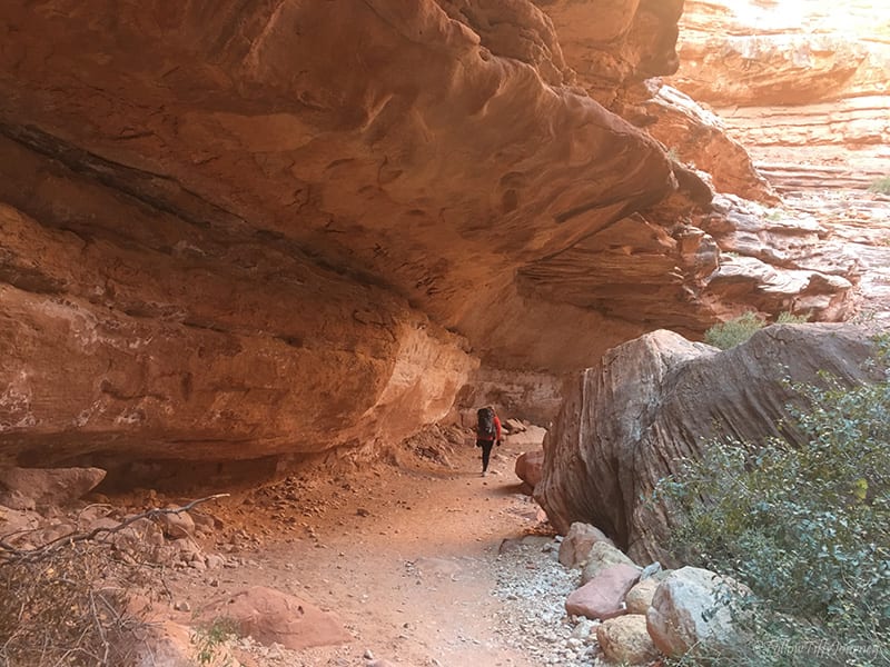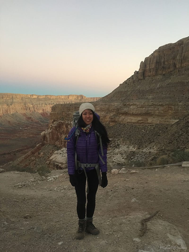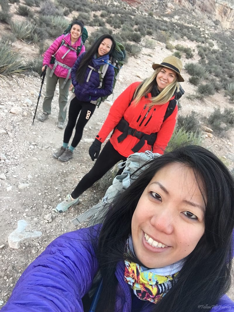 We arrived at 6:30 am (don’t forget about the 1 hr time difference from LA… cause we totally did) and started to hike by 7 am. The trail is well maintained and easy to follow; Β just watch out for the serious amount of horse poop on that first mile going down. Β Once you reach the canyon floors, you can basically walk in the middle of what I assume is a dried up river, or if you look along the sides (sometimes right side, sometimes left), you’ll often find the sandy trail that’s easier to walk on since there are not all the small rocks. Β The first few miles, if not all, are actually marked on the trail (but not if you are walking in the middle)… which we did not realize until coming back.