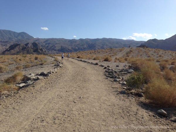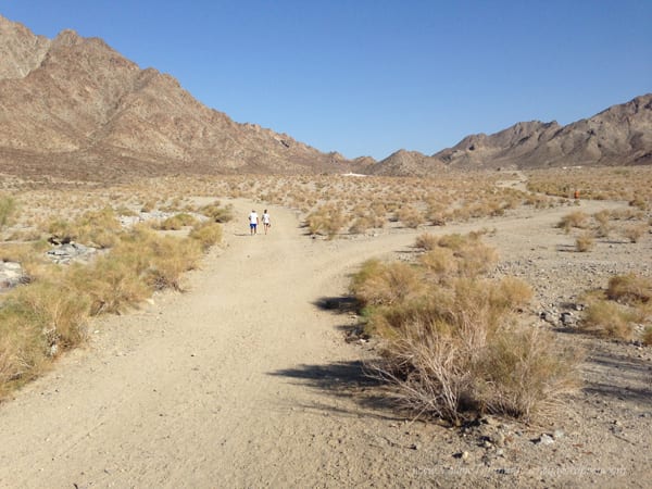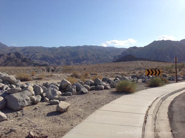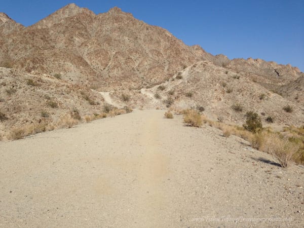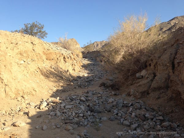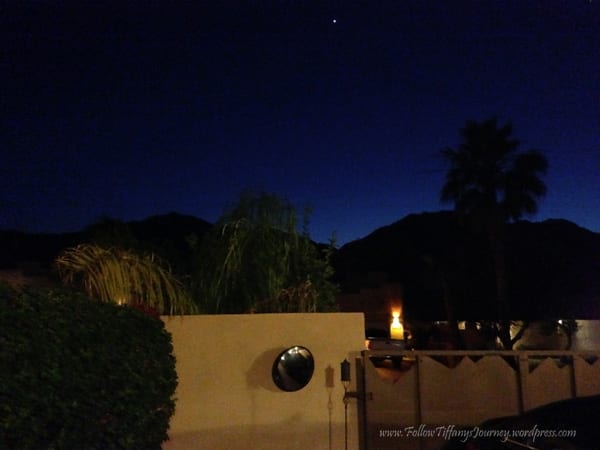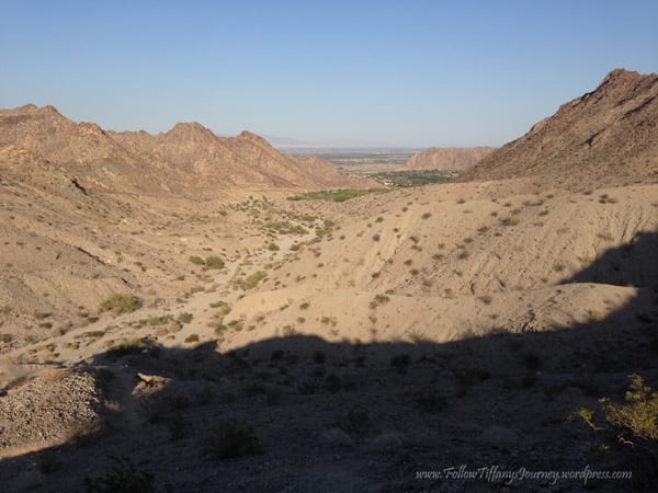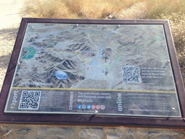 We walked to the top of the cove which is basically the La Quinta trails in Palm Springs area. There are several trails here and I like that they are all color coded, it makes it easier to find the trail on markers. We did the Cove to Lake Trail but with this California drought, of course there is no water. We hiked 4.79 miles, including the 5 minute walk over, started just before 5 pm, and got back in just under two hours. There was not much elevation to this hike… except when we followed the person in front of us and went that wrong way. The trail was very wide, well-maintained, flat, and dirt. Even though it was evening, it was a really warm day. I guess being out in the desert doesn’t help.