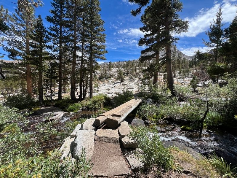You’ll only follow this popular route for about 0.8-mile before reaching a junction for Bishop Pass and Treasure Lakes—keep right to continue toward Treasure Lakes.